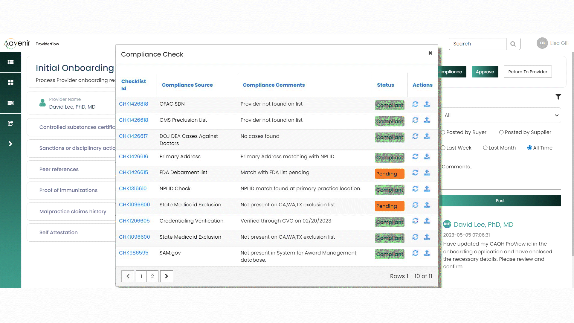 Verify NPI IDs, addresses, and CAQH credentials and receive real-time alerts for non-compliance against HHS-OIG, FDA, State Medicaid and other federal and state exclusion lists.