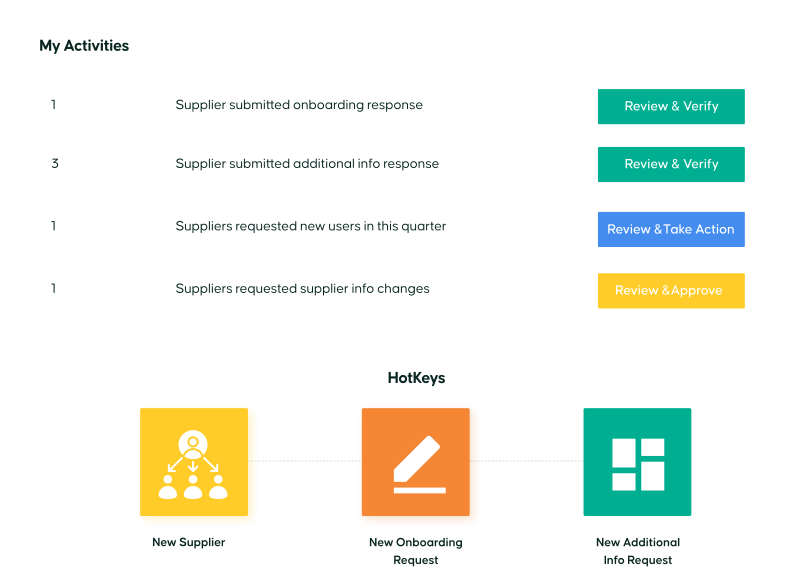Rapidly request, collect, review, and approve necessary information from suppliers to enable frictionless onboarding.